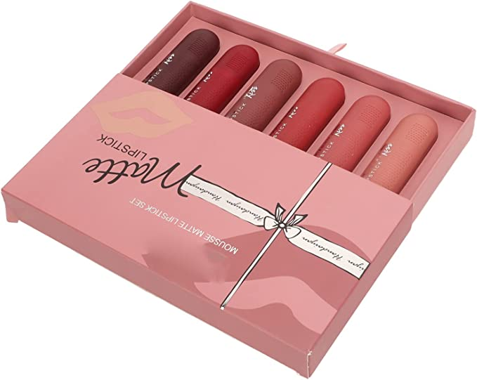 Conjunto de 6 Batons Foscos de 0,1 Onças, Batom de Longa Duração para Maquiagem de Lábios Femininos, Cosméticos Pigmentados para Os Lábios para Festas de Namoro e Cosplay